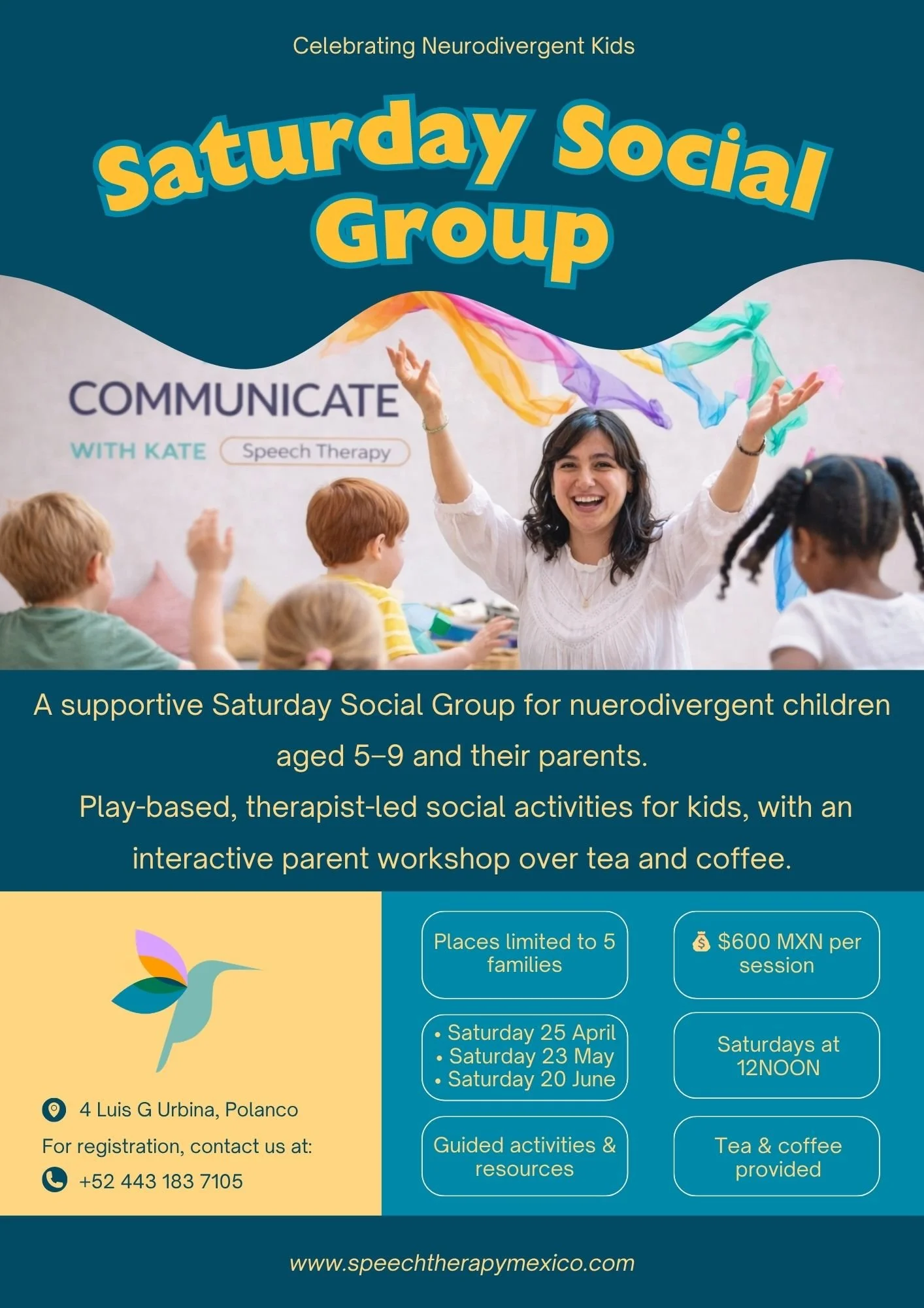 A play-based, therapist-led social group designed especially for neurodivergent children aged 5–9, alongside a supportive space for parents.